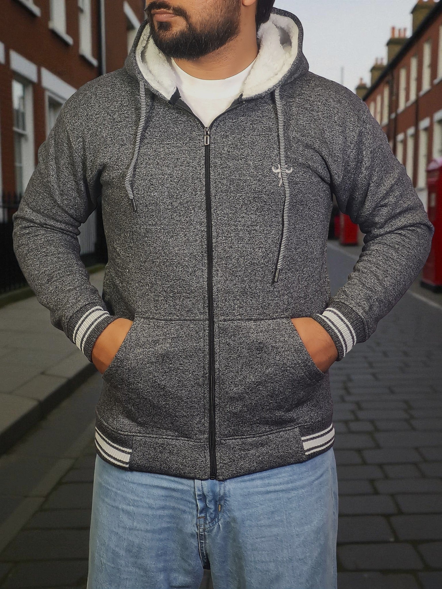 Gambluss Granite Winter Hoodie – Chain Yarn Fleece 350 GSM with Fur Inner